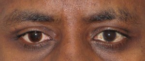 Enophthalmos and eyelid laxity not present.
