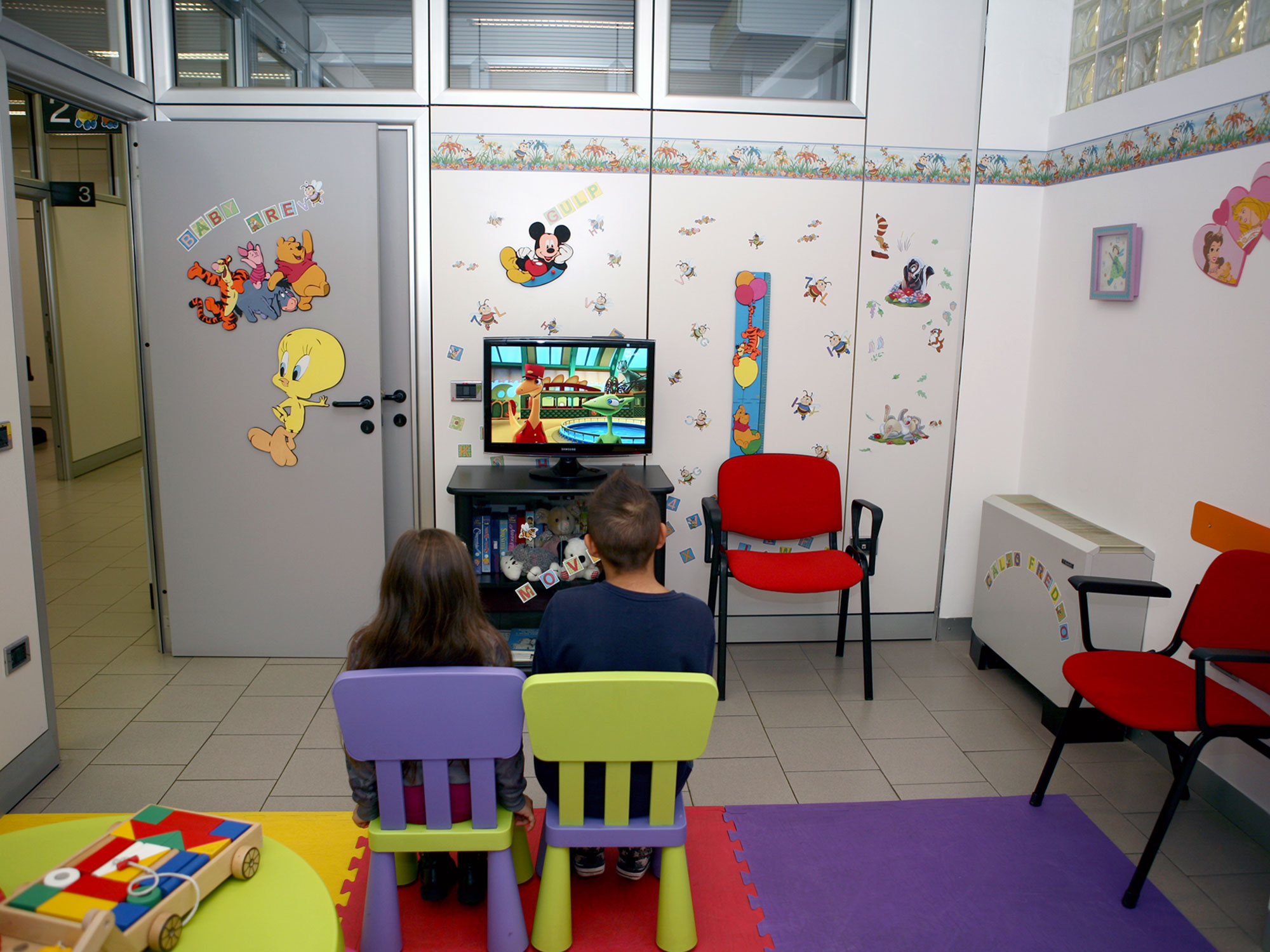 Un ambulatorio coloratissimo e completamente attrezzato per i piccoli pazienti pediatrici, con tutto quello che serve per far dimenticare ai bambini di trovarsi “dal dottore”.